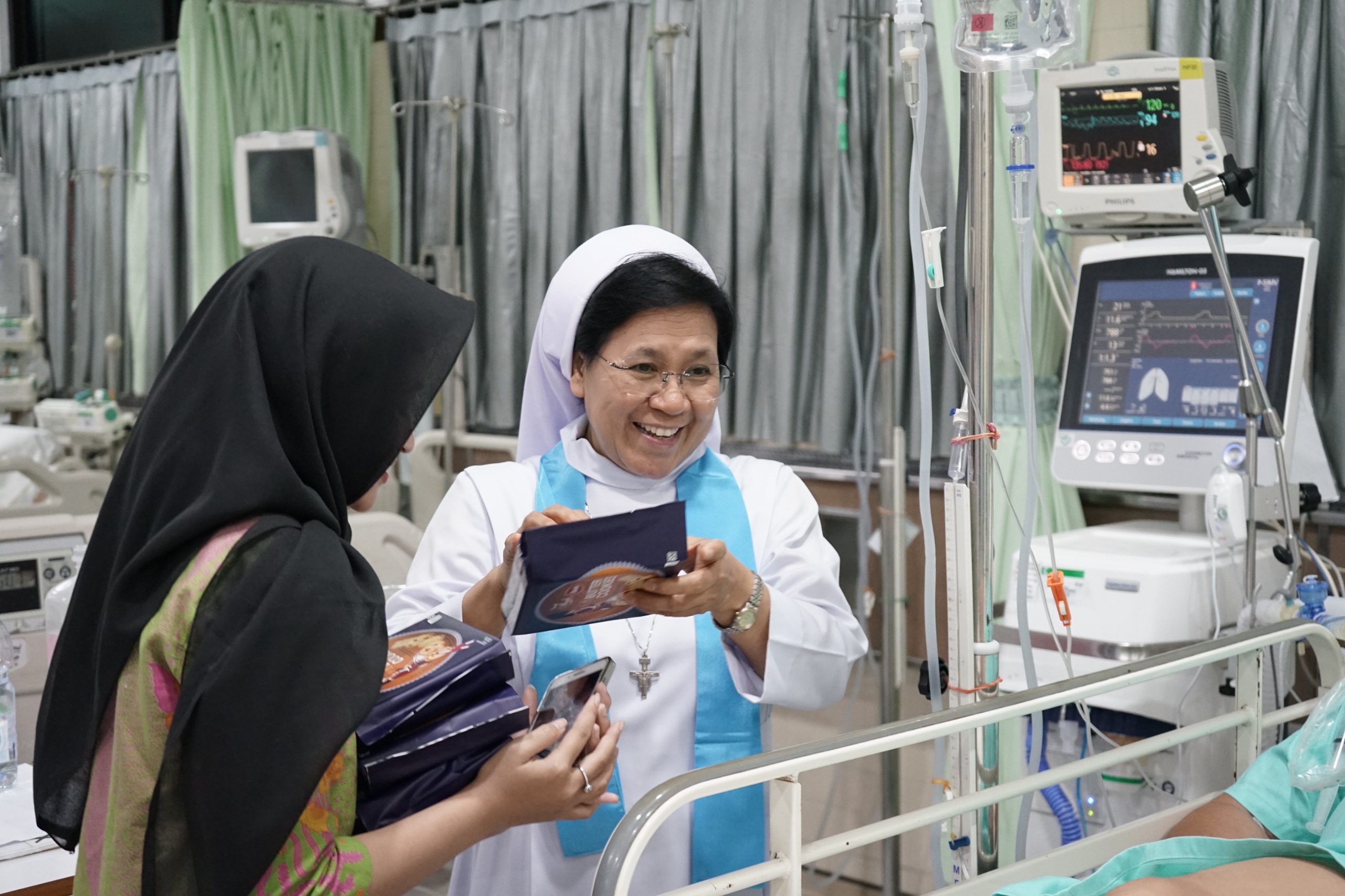 Para romo dan suster yang dengan penuh sukacita ikut membagikan bingkisan kepada pasien Muslim menjadi gambaran konkret toleransi dan penghormatan terhadap keyakinan yang berbeda.